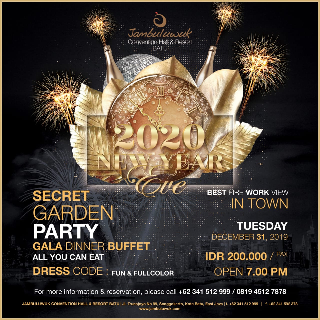 Pastikan Anda tak melewatkan menikmati momen berharga di penghujung tahun 2019 ini dengan berpartisipasi pada Program ‘2020 New Year Eve di Jambuluwuk Convention Hall & Resort Batu, Malang..