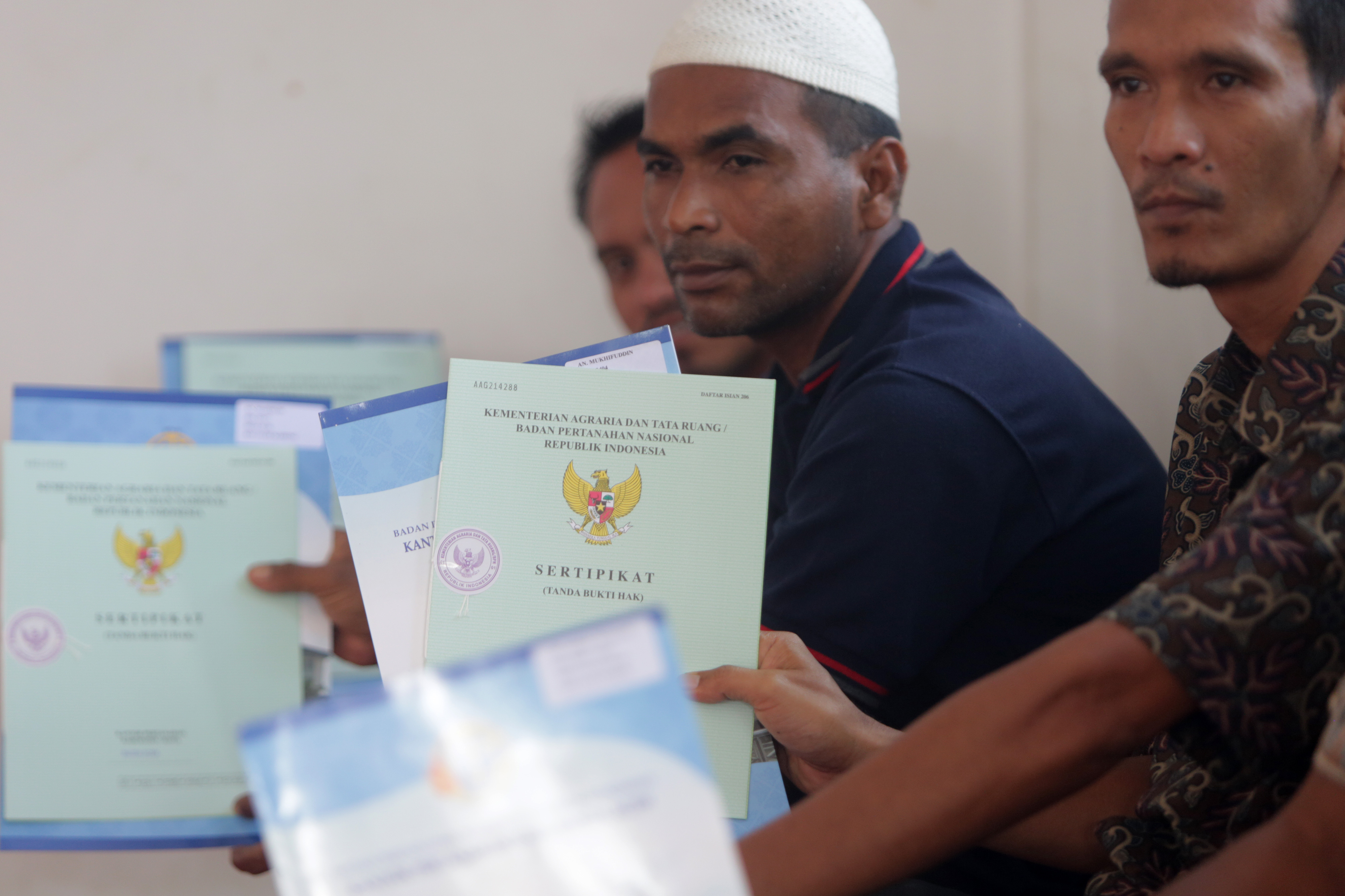 KEMENTERIAN Agraria dan Tata Ruang/Badan Pertanahan Nasional (ATR/BPN) membagikan 750 sertifikat hasil program redistribusi tanah di Desa Kamal dan Mekar Rahayu, Sumedang, Jawa Barat. Sertifikat diserahkan langsung kepada petani yang menggarap lahan di wilayah tersebut.