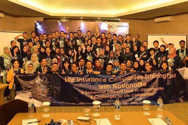 PT Reasuransi Nasional Indonesia atau NasionalRe menggelar pelatihan untuk mitra perusahaan asuransi jiwa di Hotel Baobab, Prigen Pasuruan, Jawa Timur sel 11-13 Januari 2019.
