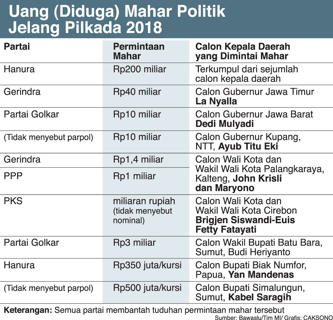 Bawaslu diminta serius menindaklanjuti kasus dugaan mahar di Pilkada 2018.