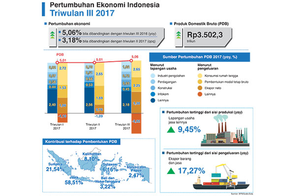 BADAN Pusat Statistik (BPS) mencatat pertumbuhan konsumsi rumah tangga pada kuartal III 2017 hanya mencapai 4,93% secara tahunan (year on year).