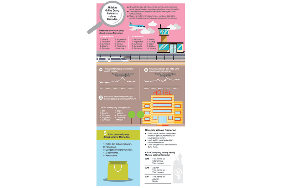 Pencarian dengan kata kunci Ramadan mengalami peningkatan. Baik itu terkait ibadah, makanan, maupun tiket.