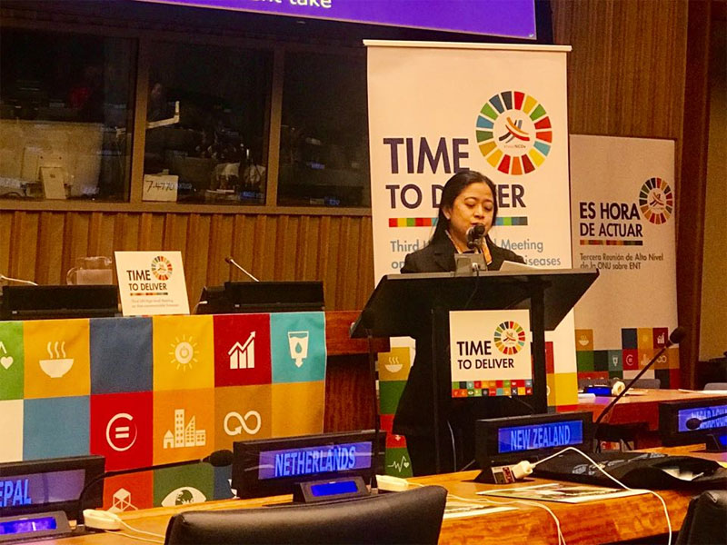 MEMASUKI hari keempat High Level Week United Nations General Assembly ke-73, Menteri Koordinator Bidang Pembanguan Manusia dan Kebudayaan (Menko PMK) Puan Maharani selaku Head of Delegation Indonesia menyampaikan pernyataan pada Plenary High-Level Meeting on Non-Communicable Diseases, Kamis (27/9).