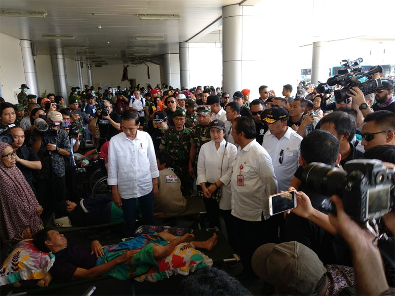 MENTERI Koordinator Pembangunan Manusia Dan Kebudayaan (Menko PMK) Puan Maharani bersama Mensos Agus Gumiwang, Menristek Dikti M Nasir, dan Menteri PUPR Basuki Hadimuljono, mendampingi Presiden Joko Widodo mengunjungi korban bencana di Sulawesi Tengah, Rabu (3/10).
