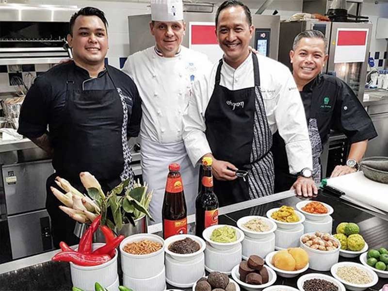 DEGAN Septoadji, Koki Indonesia, mengajarkan cara memasak soto dan kari ayam dalam kelas memasak ketiganya di sekolah kuliner kenamaan Le Cordon Bleu di Paris, Prancis, Rabu (19/9) waktu setempat.
