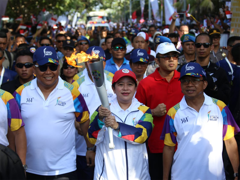 MENTERI Koordinator Bidang Pembangunan Manusia dan Kebudayaan (Menko PMK) Puan Maharani menjadi pembawa Api Obor (Torch Bearer) ke-20 Asian Games XVIII 2018 yang diselenggarakan di Jakarta-Palembang. Bali merupakan kota ke-10 setelah penyatuan api Asian Games dari India dan api abadi Mrapen, di Yogyakarta.