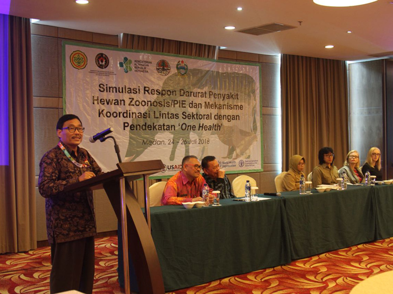 KEMENTERIAN Koordinator Bidang Pembangunan Manusia dan Kebudayaan (Kemenko PMK) bersama Pemerintah Amerika melalui Badan Pembangunan Internasional Amerika Serikat (USAID) dan Perdagangan Australia (DFAT) melaksanakan Latihan Simulasi Table-Top Menghadapi Kedaruratan Penyakit Zoonosis Melalui Pendekatan One Health di Medan, Selasa (24/7).