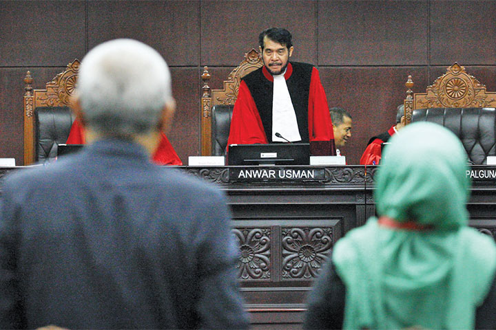 MAHKAMAH Konstitusi menolak seluruh permohonan pengujian Pasal 55 Undang-Undang Nomor 24 Tahun 2003 tentang Mahkamah Konstitusi (UU MK) yang diajukan pengurus Organisasi Angkutan Darat (Organda).