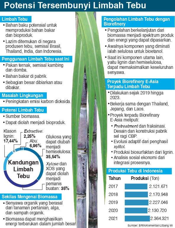 Limbah tebu melalui proses tertentu dapat diolah menjadi berbagai bioproduk. Limbah tebu mengandung 35,54 glukosa yang dapat diubah menjadi hemiselulosa.