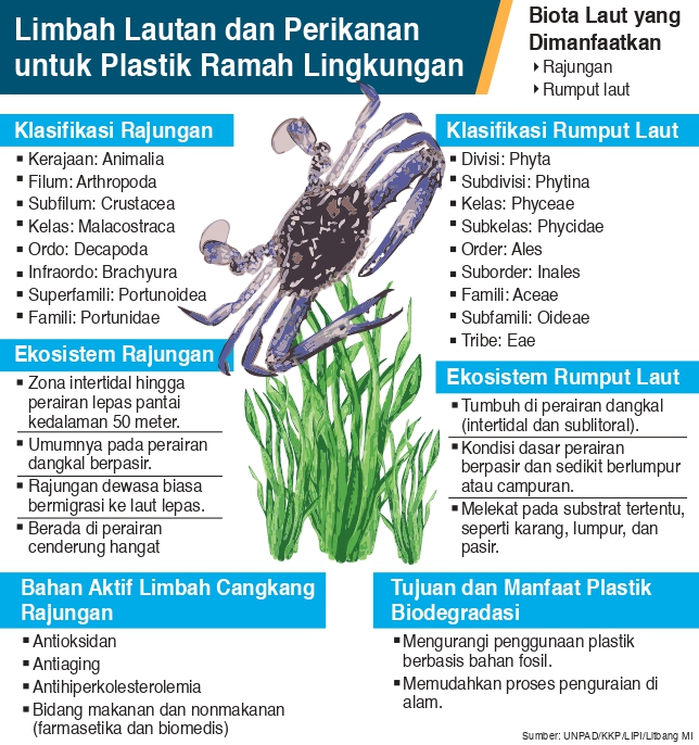Limbah biota perikanan dan kelautan memiliki potensi yang besar dan dapat diolah menjadi purwarupa kemasan plastik biodegradasi (biodegradable) sehingga dapat diurai dengan waktu singkat.