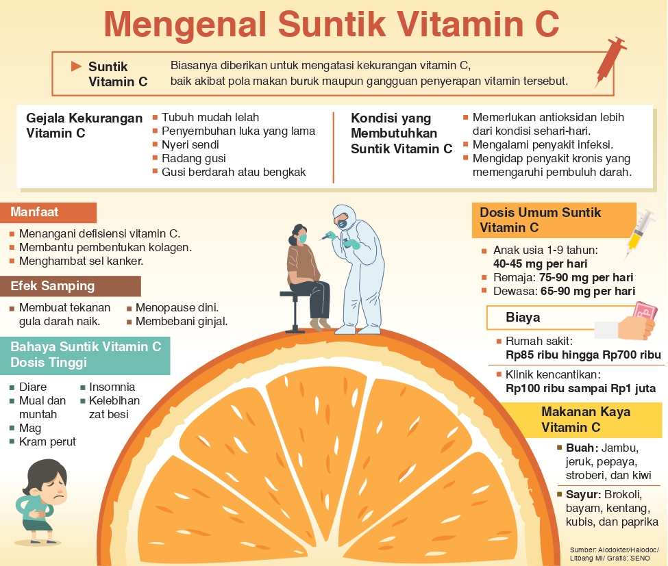 Suntikan vitamin C dibutuhkan pada kondisi-kondisi khusus seperti perlu antioksidan lebih dari kondisi sehari-hari pada penyakit infeksi dan kronis yang memengaruhi pembuluh darah.