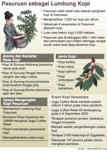 Kabupaten Pasuruan tidak hanya memiliki keunggulan di tanaman pangan, namun juga di tanaman perkebunan. Salah satu produk unggulan tanaman perkebunan di Kabupaten Pasuruan adalah kopi.