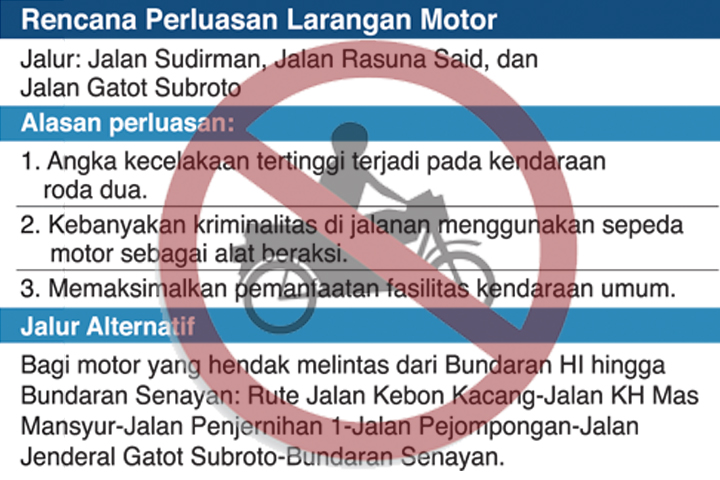 Tidak ada diskriminasi terhadap motor. Hal ini murni hanya untuk peningkatan jaringan jalan. Ini momentum untuk memaksa masyarakat menggunakan angkutan umum.