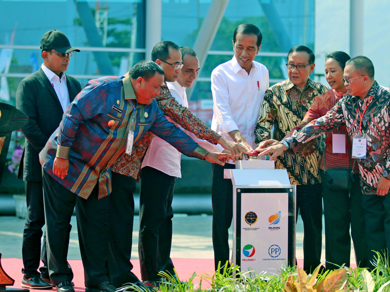Presiden Joko Widodo meresmikan pengembangan dan penataan Pelabuhan Sibolga, Sumatra Utara, Minggu (17/3).