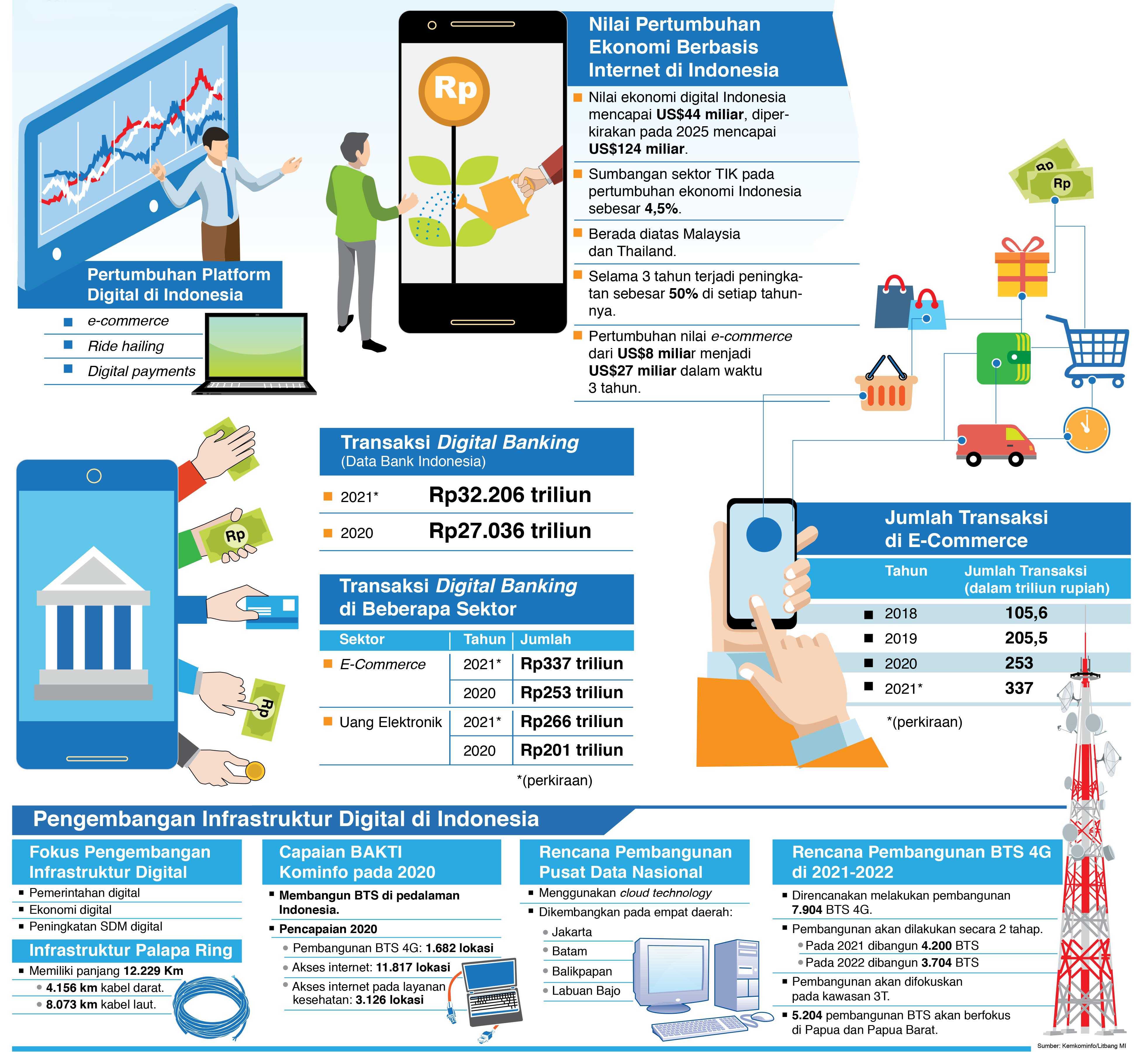 Nilai ekonomi digital Indonesia mencapai US$44 miliar, diperkirakan pada 2025 mencapai US$124 miliar.