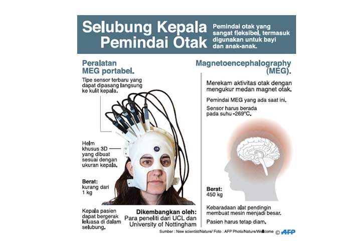 PARA peneliti di Pusat Pencitraan Sir Peter Mansfield, Universitas Nottingham, dan the Wellcome Centre for Human Neuroimaging, University College London, mengembangkan pemindai otak generasi baru yang dapat dipakai seperti helm.