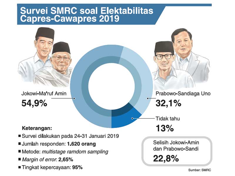 CAPRES-CAWAPRES nomor urut 01 Joko Widodo dan Ma’ruf Amin mendulang dukungan signifikan dalam sigi teranyar Saiful Mujani Research and Consulting (SMRC).