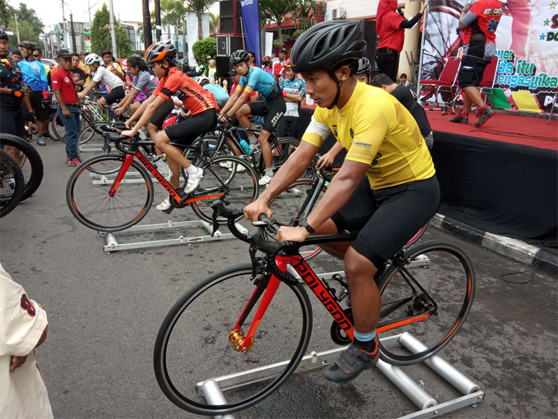 Sri Mulyani menyambut positif kegiatan sosialisasi bersepeda sehat yang dilakukan oleh gabungan komunitas sepeda Klaten di car free day.