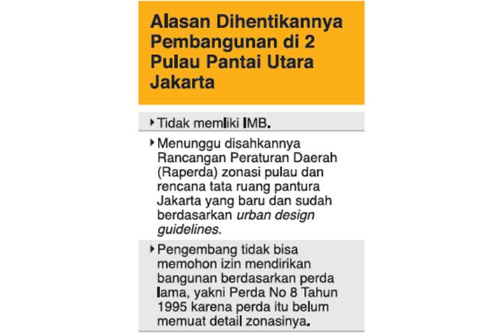 Pembangunan fisik di pulau hasil reklamasi tanpa IMB dan belum ada pembayaran PBB. Masyarakat diminta tidak terburu-buru membeli karena penjulan properti itu ilegal.