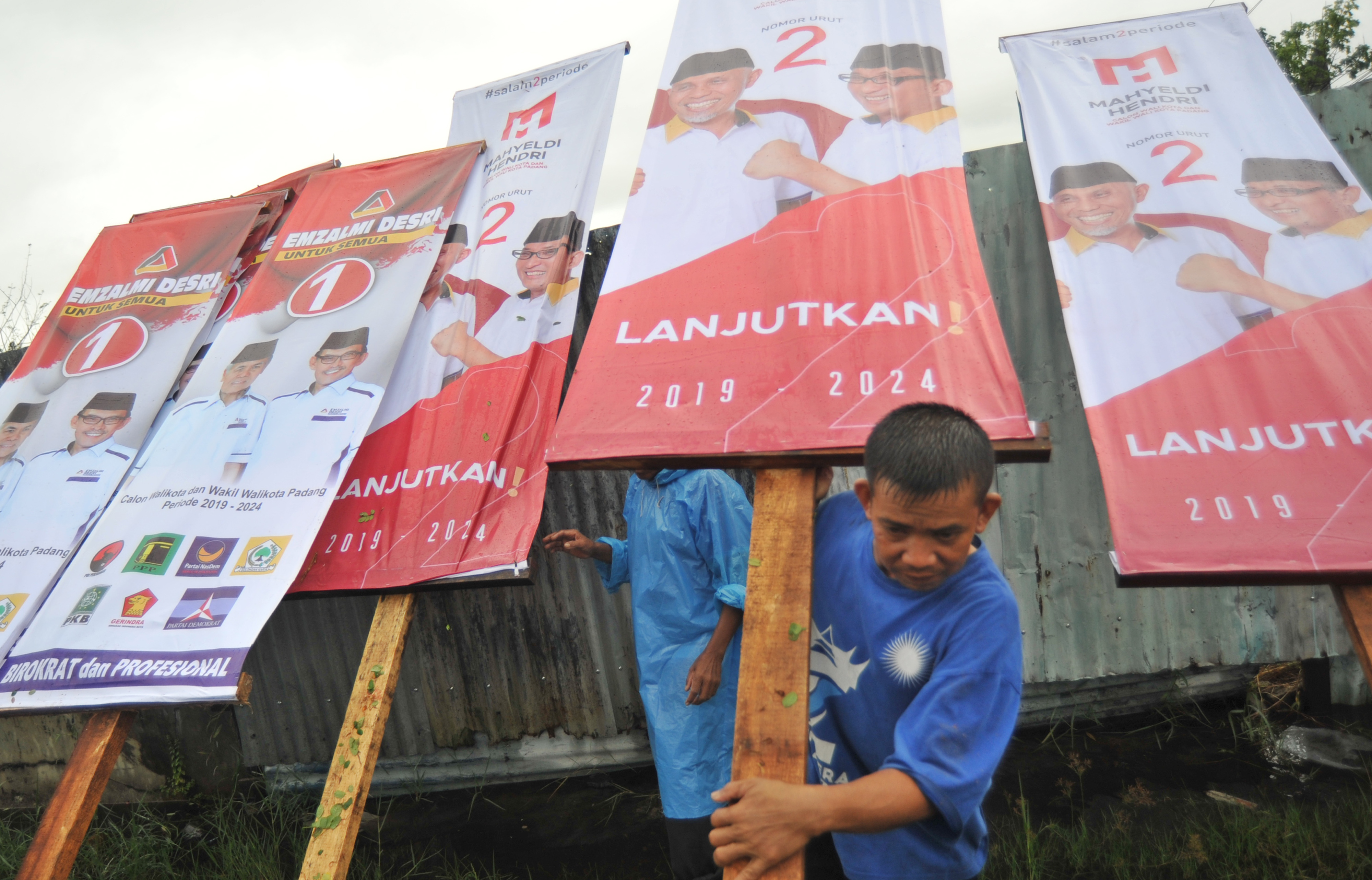 KOMISI Pemilihan Umum (KPU) Kota Padang gelar gerak jalan sehat bersama masyarakat Kota Padang, Sumatra Barat, Minggu (15/4).