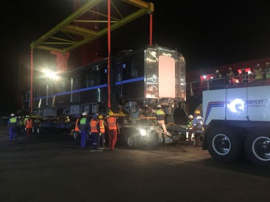 PROSES bongkar muat (unloading) empat bagian kepala (rolling stock) kereta Mass Rapid Transit (MRT) baru akan dikerjakan, Jumat (5/5) besok.