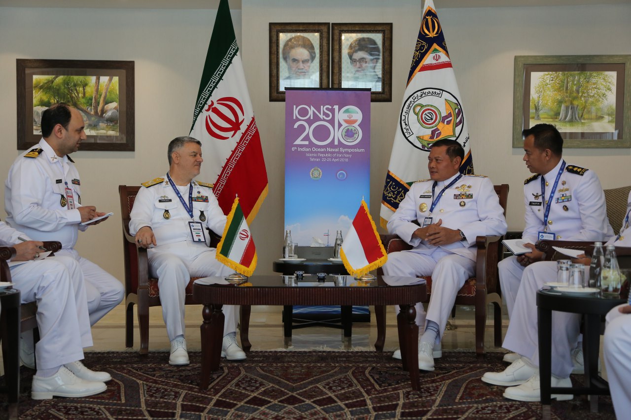 PANGLIMA Komando Armada RI Kawasan Barat (Pangarmabar) Laksamana Muda Yudo Margono melaksanakan pertemuan bilateral dengan Kepala Staf Angkatan Laut dari empat negara peserta IONS 2018 disela-sela kegiatan IONS 2018 di Teheran, Iran, Rabu (25/4).