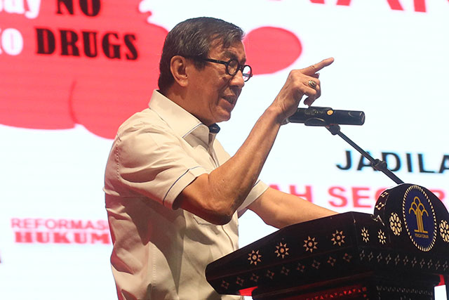 MENTERI Hukum dan HAM Yasonna Laoly meresmikan Tempat Pemeriksaan Imigrasi yang berdiri di Dermaga Marina Ancol, Ancol, Pademangan, Jakarta Utara, Rabu (25/6). Pembangunan Tempat Pemeriksaan Imigrasi itu atas kerja sama PT Pembangunan Jaya Ancol Tbk bersama Kantor Imigrasi Kelas I Khusus Jakarta Barat.