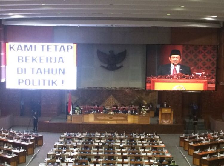 KETUA DPR RI Bambang Soesatyo membacakan pidato penutupan masa sidang IV tahun sidang 2017/2018 di Gedung DPR RI, Jakarta, Kamis (26/4).