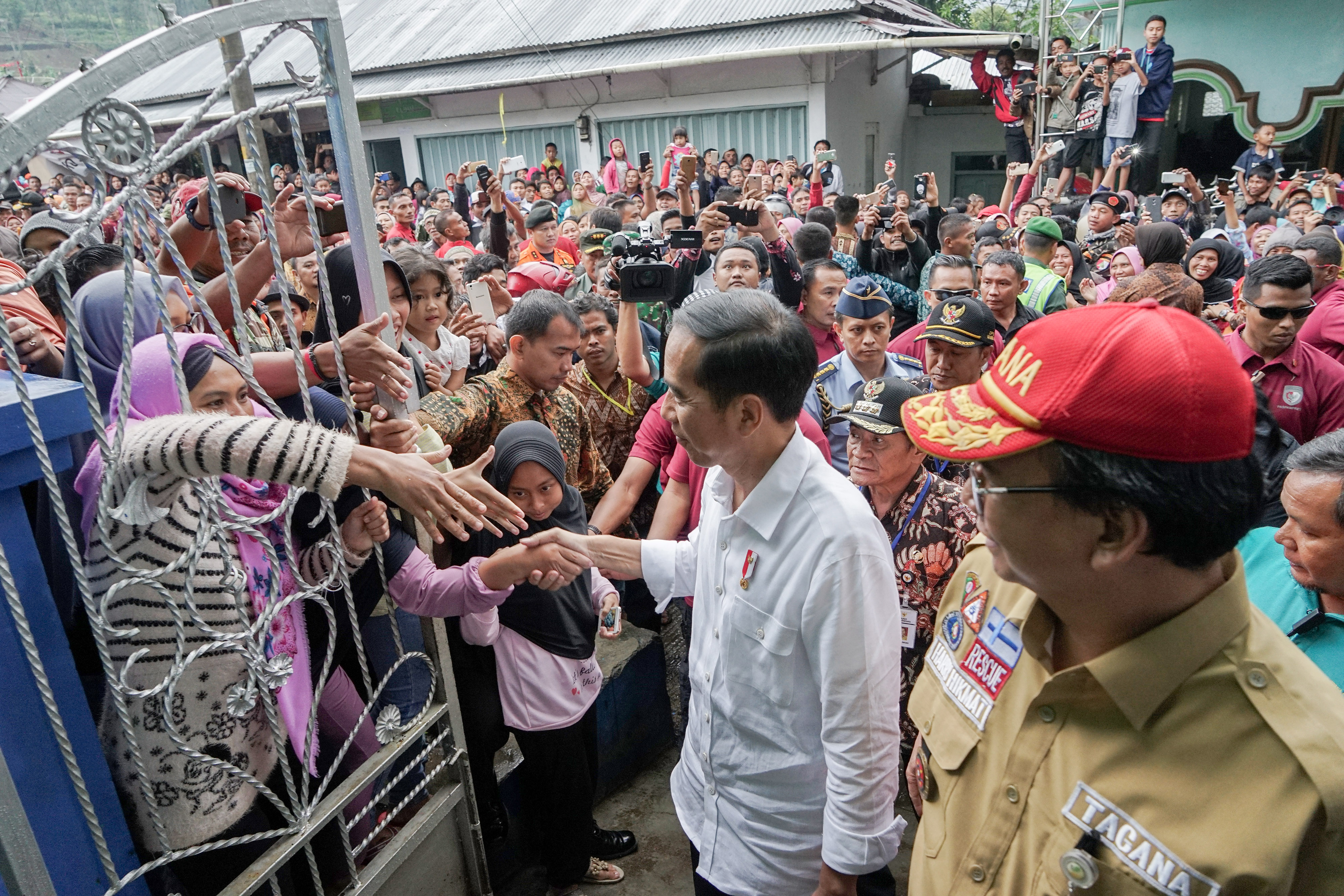 KUNJUNGAN Presiden Joko Widodo ke lokasi pengungsian gempa Banjarnegara di SDN 01 Sidakangen, Banjarnegara, Jawa Tengah diikuti pemberian bantuan.