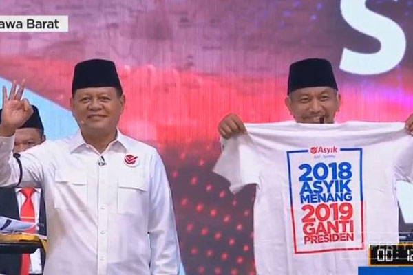 Pembentangan kaos bertuliskan tagar 2019GantiPresiden yang dilakukan oleh pasangan calon Gubernur dan Wakil Gubernur Jawa Barat nomor urut 3 Sudrajat-Achmad Syaikhu dalam debat kandidat kedua yang diselenggarakan di Universitas Indonesia Senin (14/5) malam dinilai sebagai sebuah pengalihan isu.