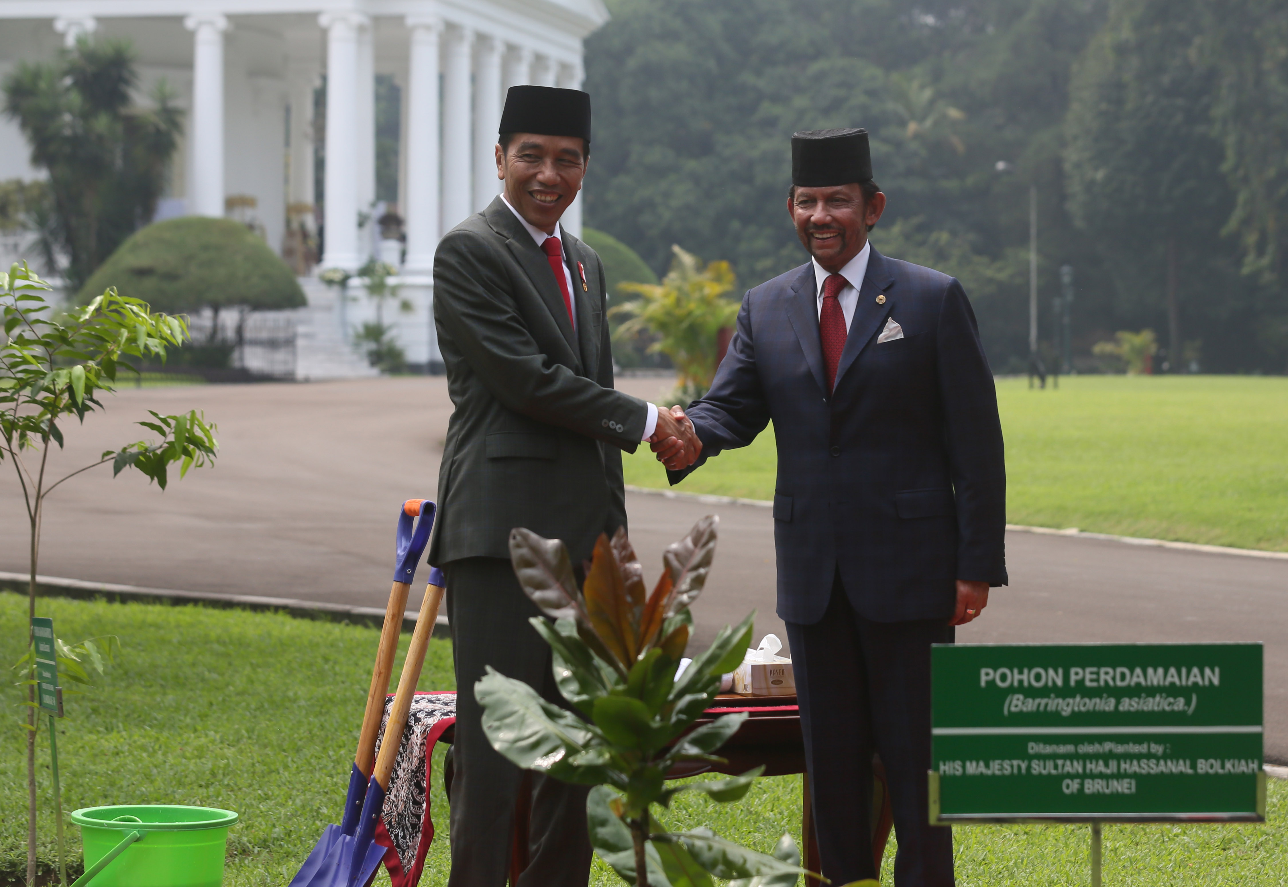 Kemeriahan sambutan atas kunjungan kenegaraan Sultan Hassanal Bolkiah tampak meriah di Istana Bogor, Jawa Barat, Kamis (3/5). Para prajurit penyambut dan anak-anak berpakaian adat seluruh Nusantara berpadu dengan iringan rampak kendang dan shalawat yang diiringi tepukan rebana.