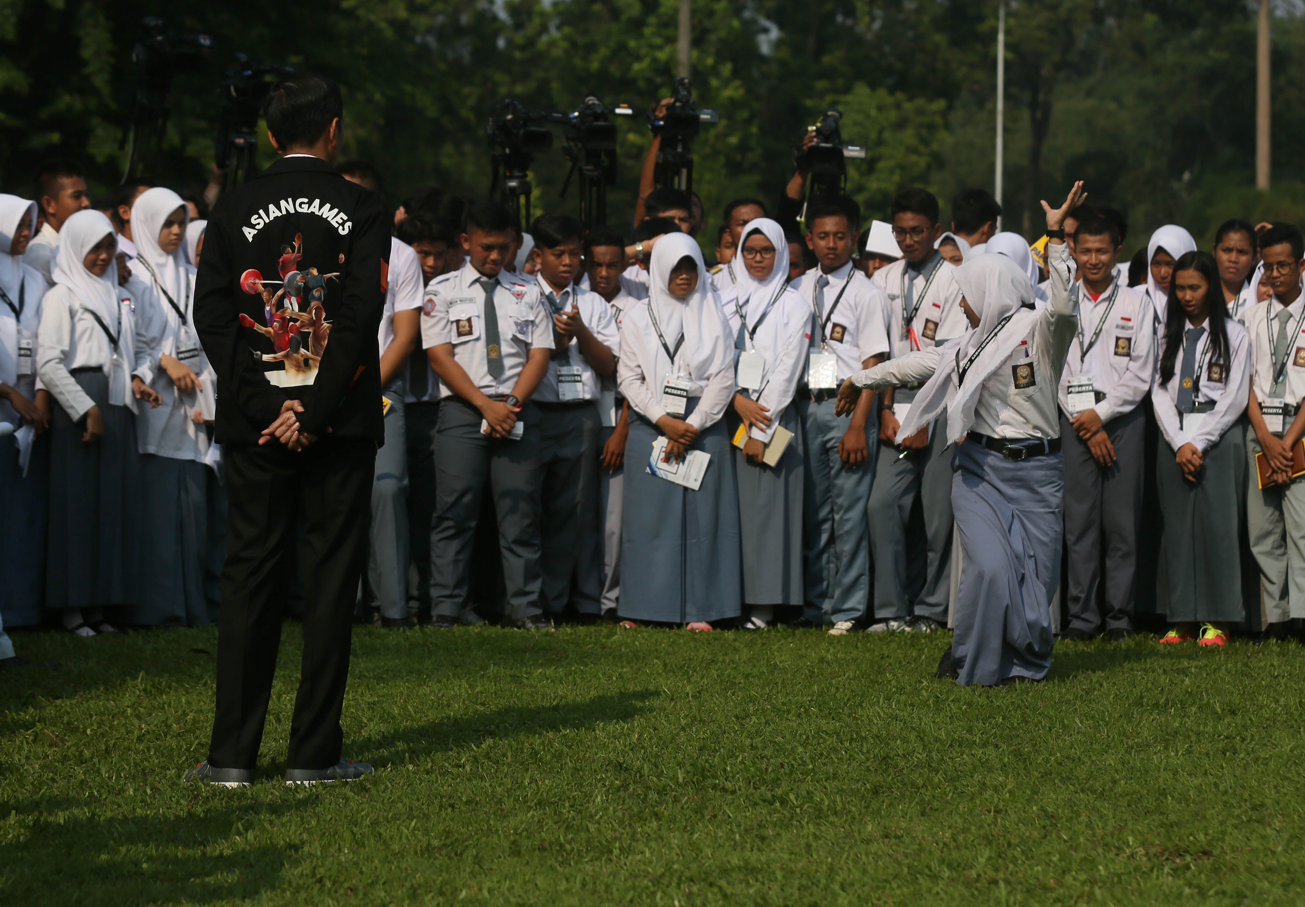 Sambil berdialog santai dengan para siswa, Jokowi mendiskusikan syarat-syarat yang seharusnya dimiliki oleh seorang pemimpin.
