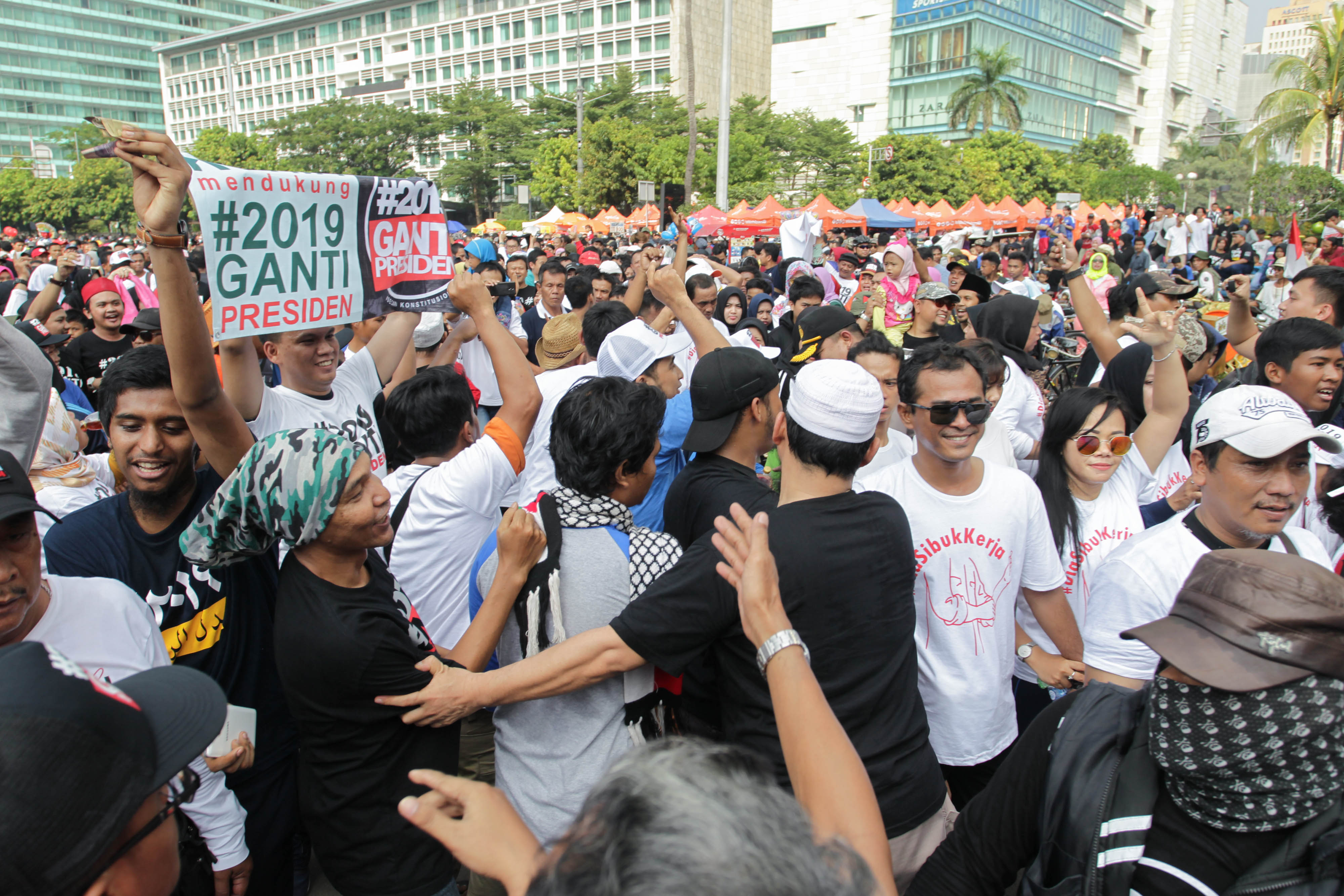 Wakil Gubernur DKI Jakarta Sandiaga Uno akan memanggil pihak-pihak terkait untuk menindaklanjuti adanya perseteruan serta dugaan intimidasi antar kelompok yang mengenakan atribut kaos #2019gantipresiden dengan #DiaSibukKerja yang terjadi di acara Car Free Day (CFD), Minggu (29/4). Berdasarkan Pergub No 12/2016 tentang Hari Bebas Kendaraan Bermotor (HBKB), area CFD harus bebas dari kegiatan politik.