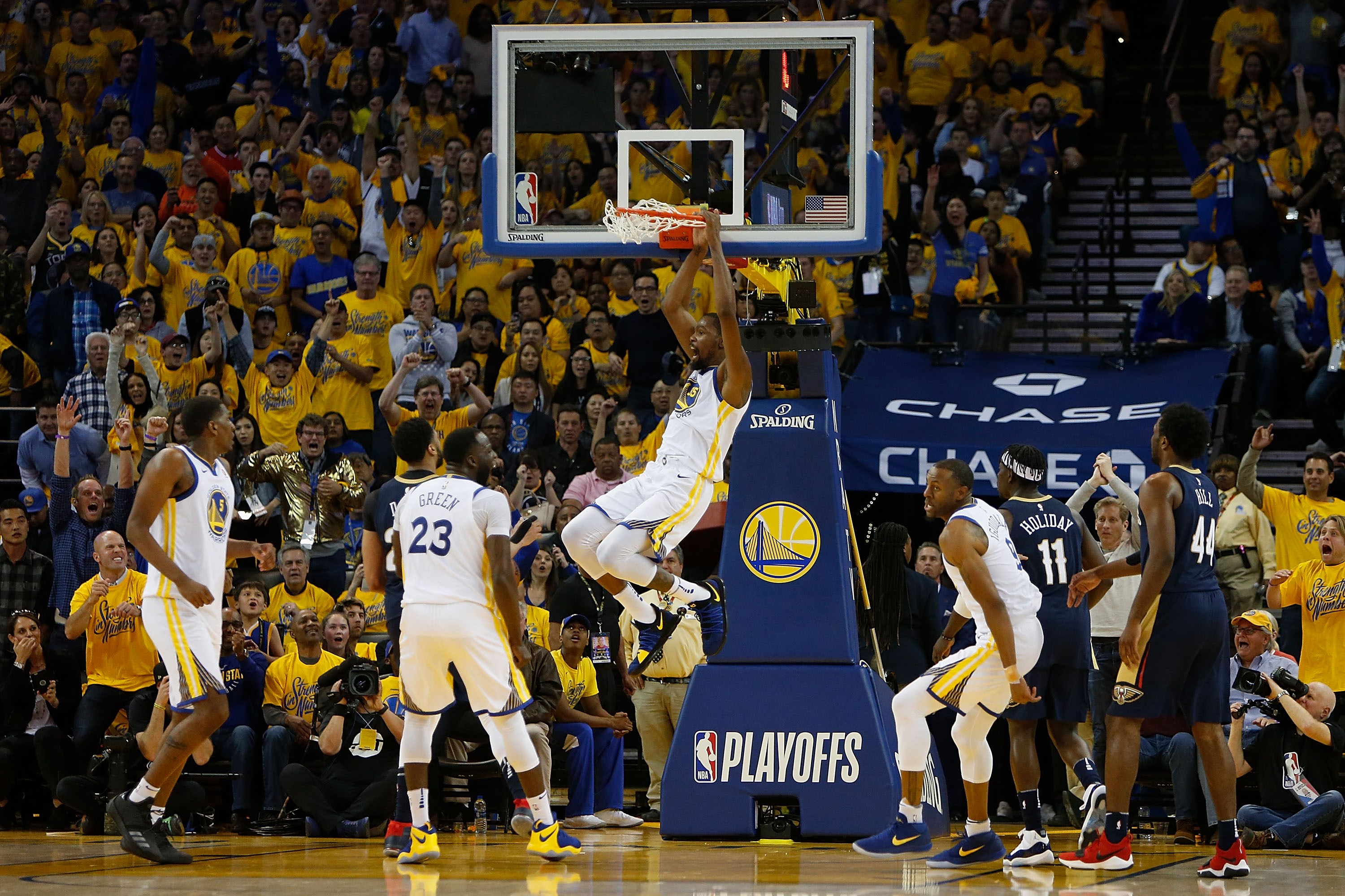 Golden State Warriors mengawali babak semifinal wilayah barat dengan maksimal. Juara bertahan NBA musim lalu itu berhasil meraih kemenangan di laga pertamanya melawan New Orleans Pelicans dengan skor 123-101 dalam duel yang berlangsung di Oracle Arena, Oakland, California, Minggu (29/4).