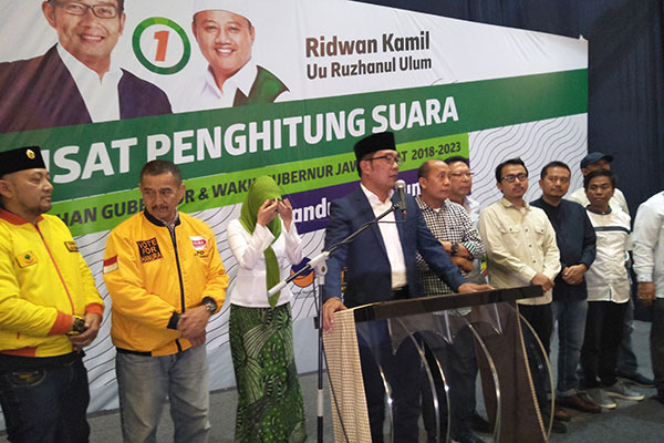 Calon Gubernur Jawa Barat Ridwan Kamil alias Kang Emil mengungkapkan rasa syukur dan terima kasihnya atas hasil hitung cepat Pilkadar Jawa Barat 2018 yang menyatakan dirinya bersama Uu Ruzhanul Ulum keluar sebagai pemenang.