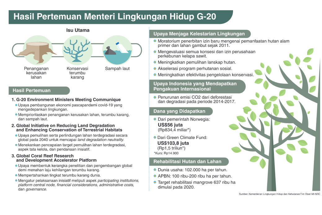 Konservasi terumbu karang, serta sampah laut menjadi perhatian utama dalam G-20 Environment Ministers Meeting atau Pertemuan Menteri Lingkungan Hidup negara anggota G-20 pada 2020