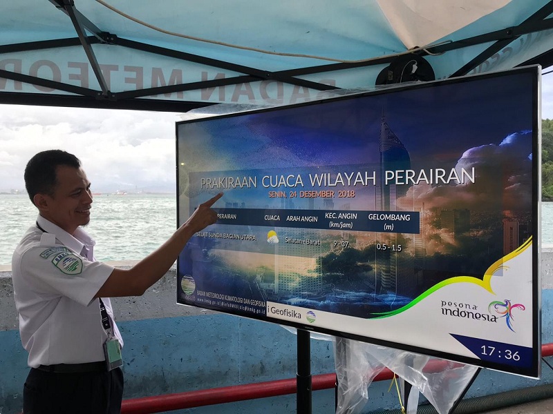 Mengantisipasi cuaca ekstrim pada Natal dan Tahun Baru, Badan Meteorologi, Klimatologi, dan Geofisika (BMKG) mendirikan posko untuk memberikan informasi cuaca di jalur penyeberangan Merak - Bakauheni.