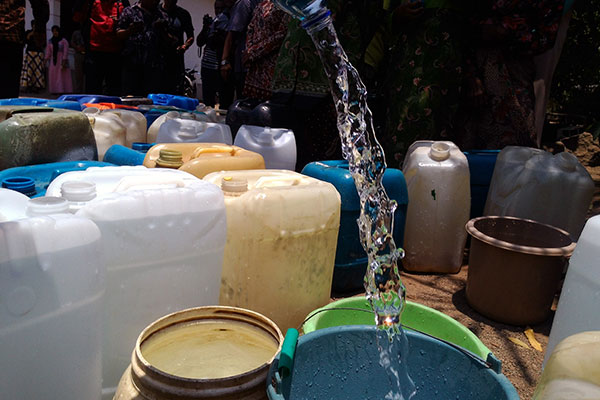 Sementara waktu, droping air bersih mengandalkan dana CSR perbankan.