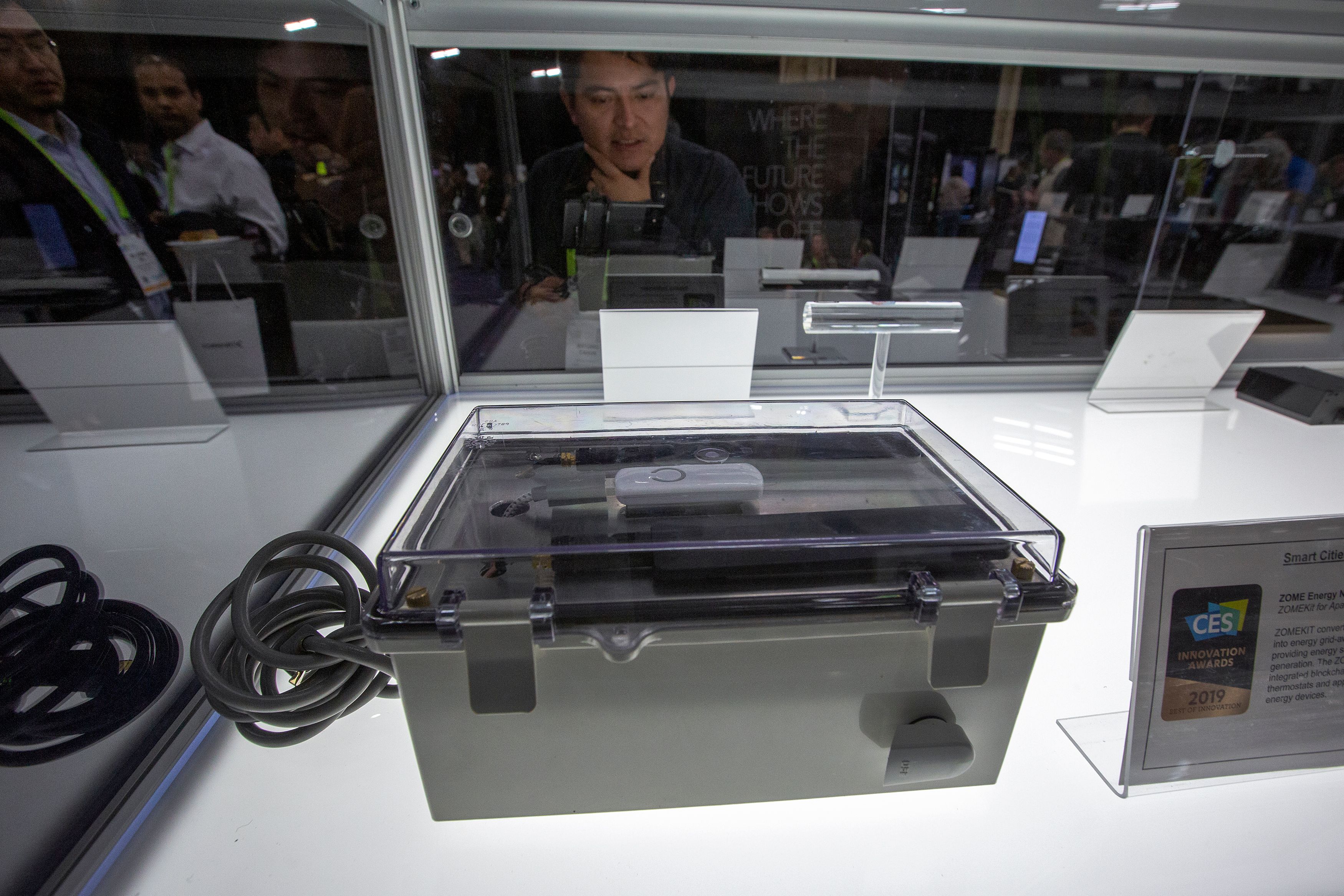 Bangun berbentuk kubus besar dari akrilik itu terlihat jelas dari segala arah.