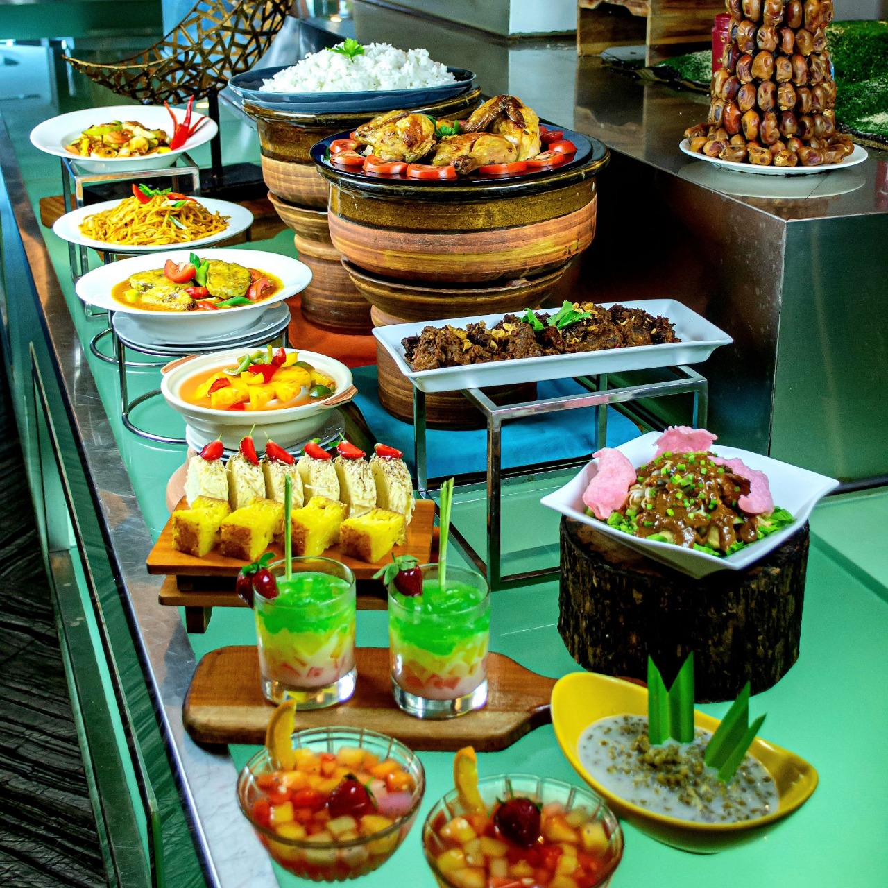 Hidangan makan malam Natal yang akan disajikan antara lain Roasted Beef Potato, Chicken Shawarma, Kambing Guling, Biryani Rice, dan Spaghetti Corner yang disuguhkan secara Live Cooking.