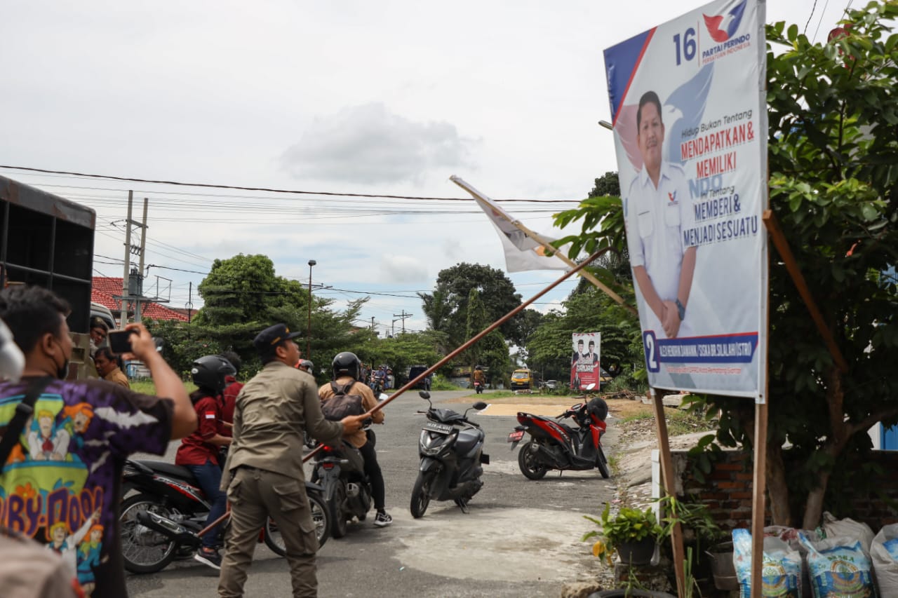 tribut yang dibersihkan yang berada di ruas jalan protokol yang melanggar peraturan, seperti di tiang-tiang lampu jalan, tiang listrik, dan pepohonan.