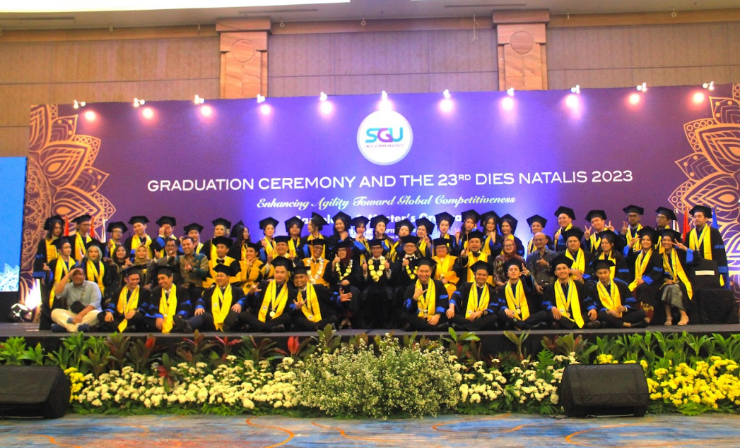 Tema wisuda SGU tahun ini adalah 'Enhancing Agility Toward Global Competitiveness' yang mencerminkan esensi dari apa yang dianut oleh SGU.