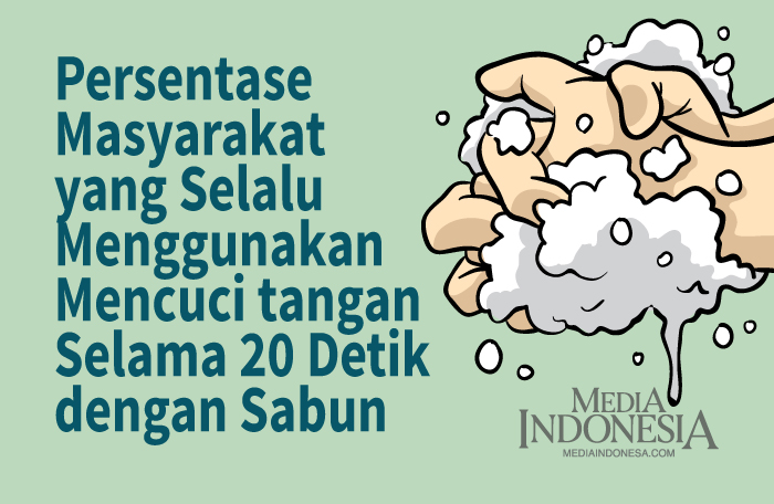 Persentase masyarakat yang rutin mencuci tangan selama 20 detik dengan sabun, selama masa pandemi, berdasarkan jenis kelamin.