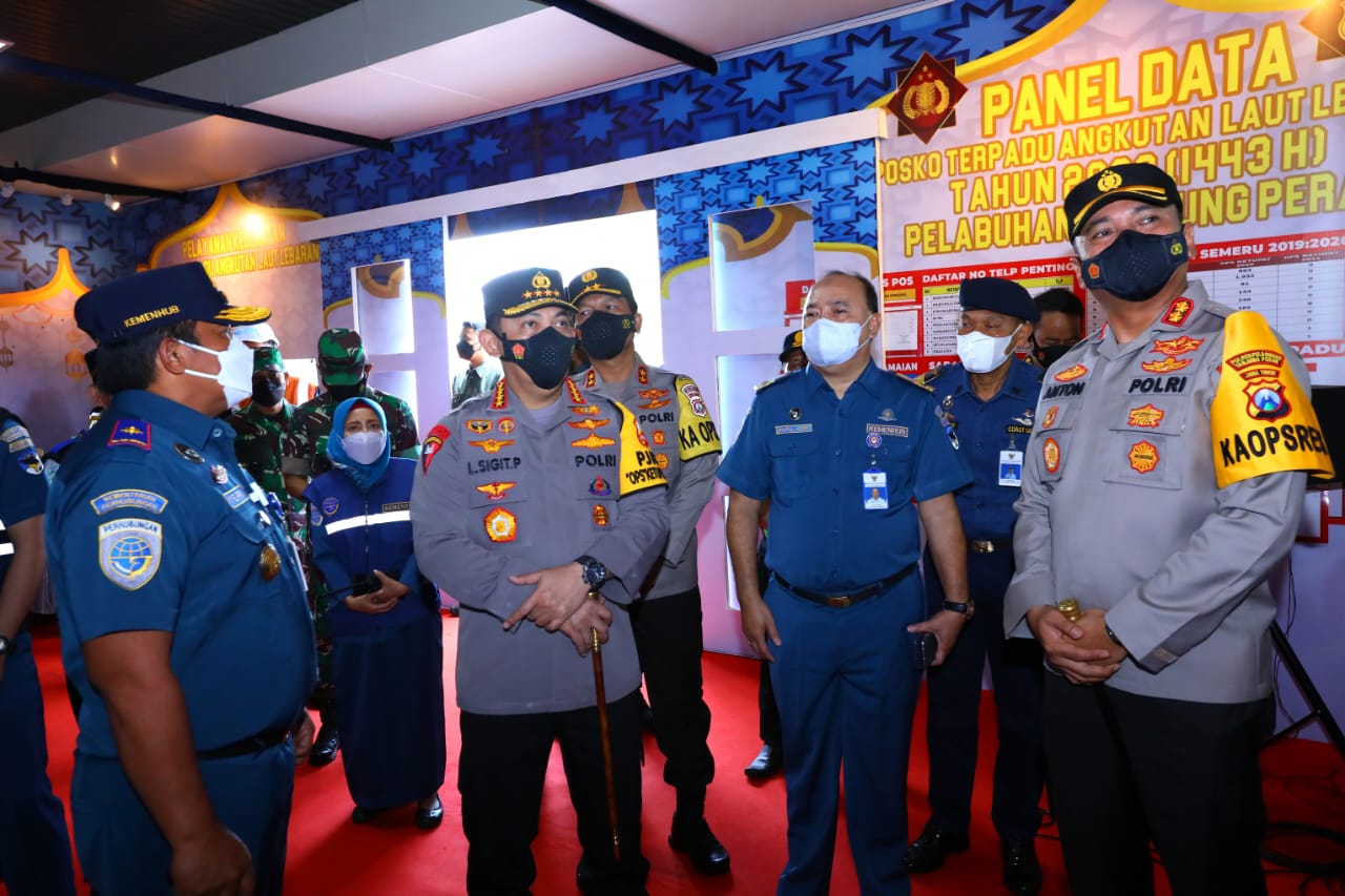 Kapolri Jenderal Listyo Sigit Prabowo bersama dengan Forkopimda Jawa Timur meninjau Pelabuhan Tanjung Perak untuk memastikan kesiapan pengamanan dan pelayanan arus mudik.