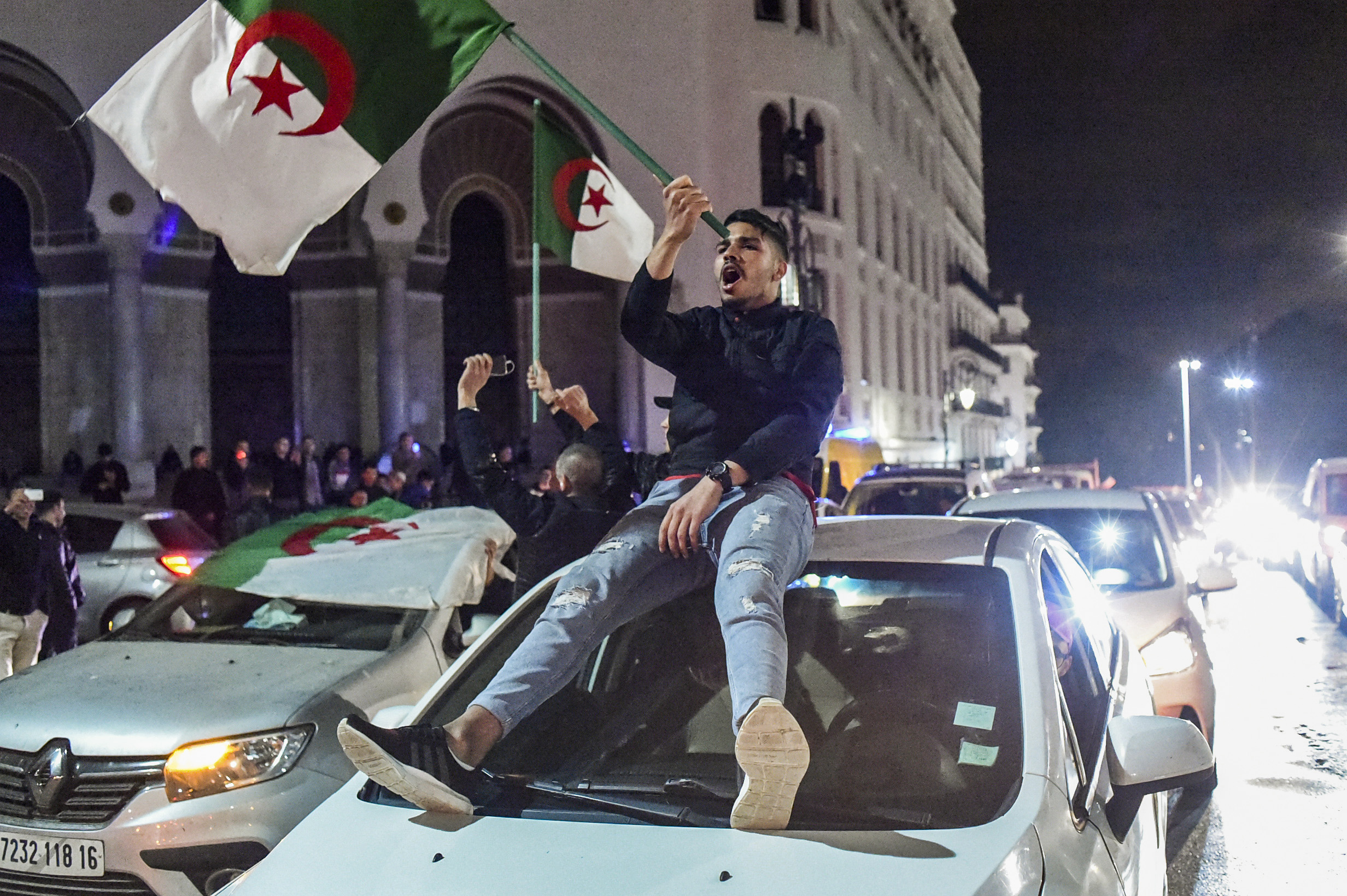 Bunyi suara klakson silih berganti terdengar di pusat kota menyambut keputusan itu. Warga Aljazair juga mengibarkan bendera di jalan-jalan yang ditinggalkan polisi.