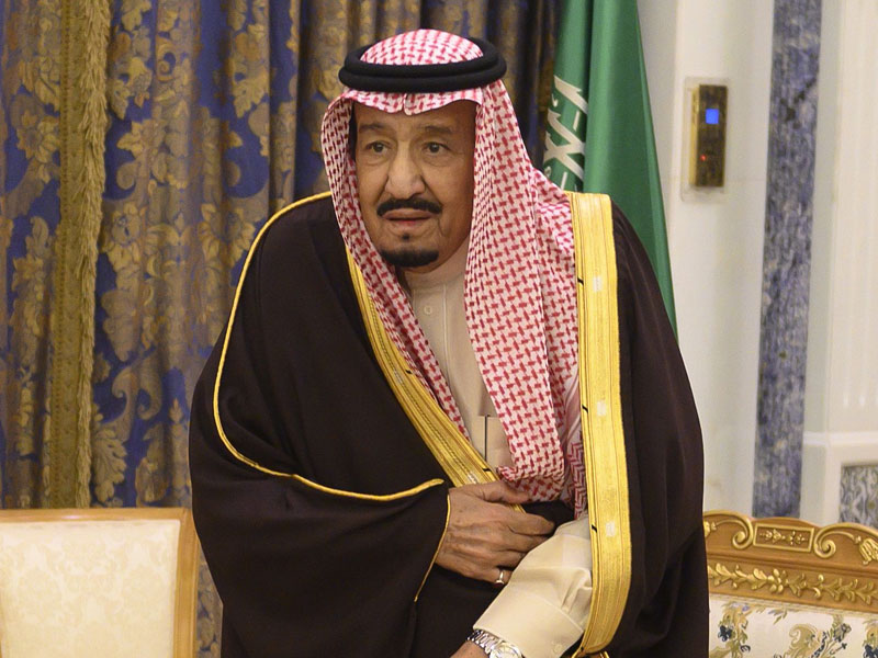TV negara memperlihatkan Raja Salman dan Putra Mahkota Pangeran Mohammed bin Salman tengah mendengarkan pengerahan mengenai perkembangan sejumlah proyek.