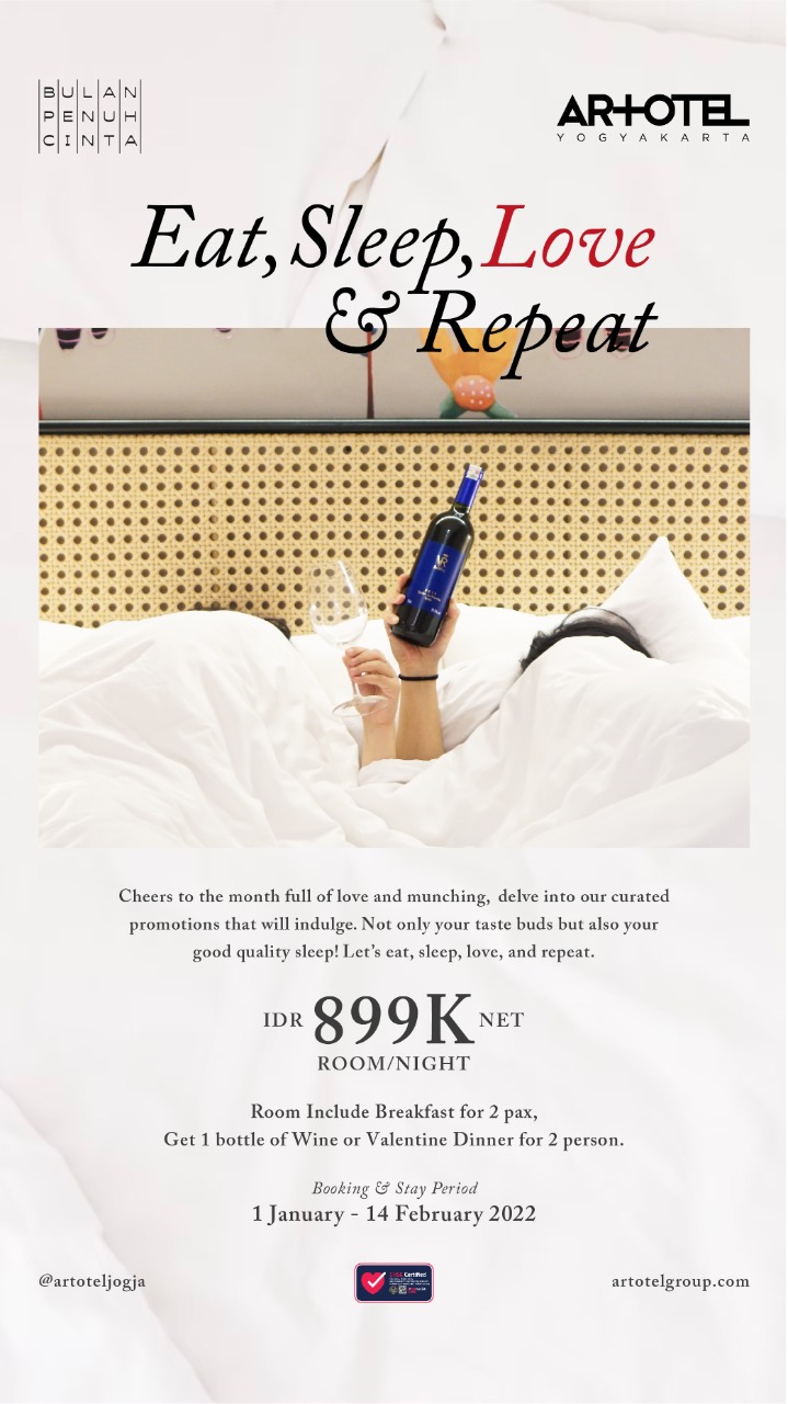 Paket menginap bertajuk 'Eat, Sleep, Love, and Repeat' di ARTOTEL Yogyakarta dapat dinikmati dengan harga Rp899.000 net,