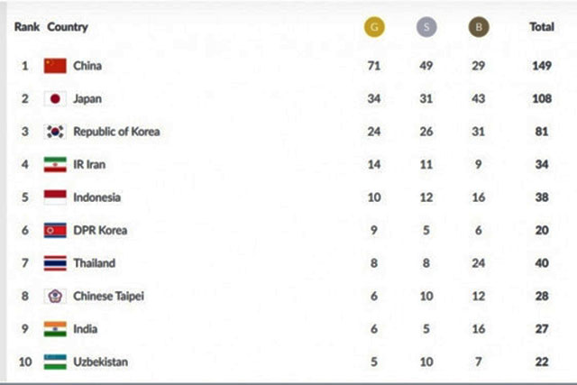 Indonesia masih menempati peringkat klasemen daftar perolehan medali sementara Asian Games 2018 hingga hari ketujuh, Sabtu (25/8).