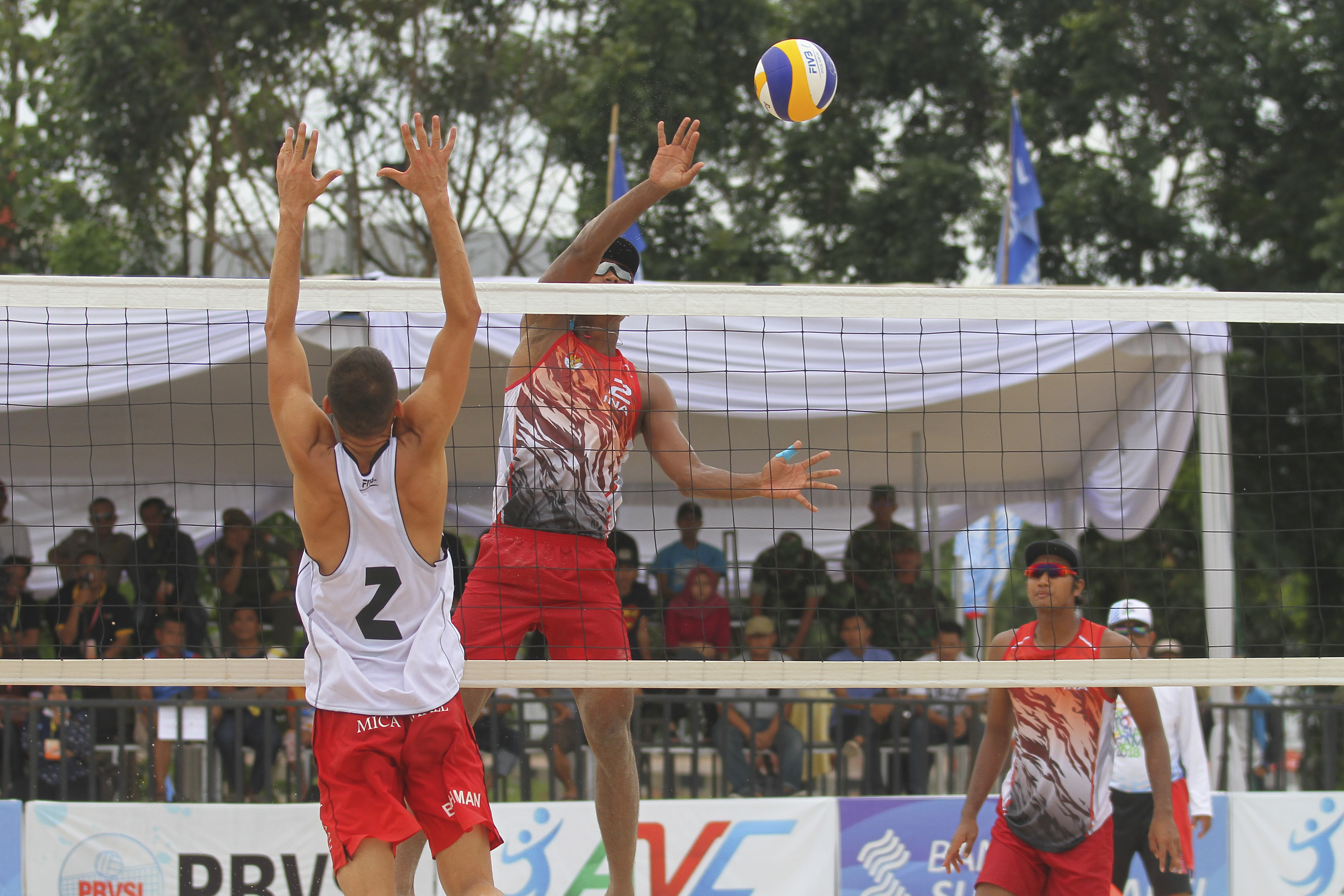 Tim voli pantai putra Indonesia 1, Ade Candra Rachmawan/Mohammad Ashfiya, berhasil menaklukkan tim voli pantai putra China yang diperkuat Jiaxin Wu/Mutailipu Aboduhalikejiang dengan skor 2-1.