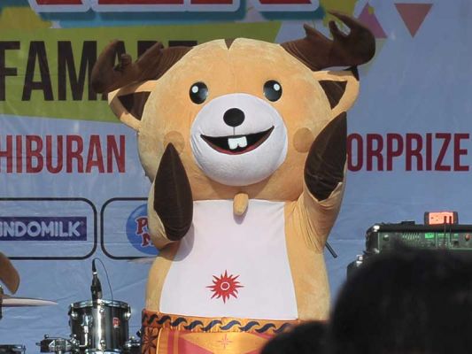 MASKOT rusa Bawean Asian Games XVIII/2018, Atung, sukses mencuri perhatian masyarakat di sekitar kawasan Galaxy, Bekasi Selatan
